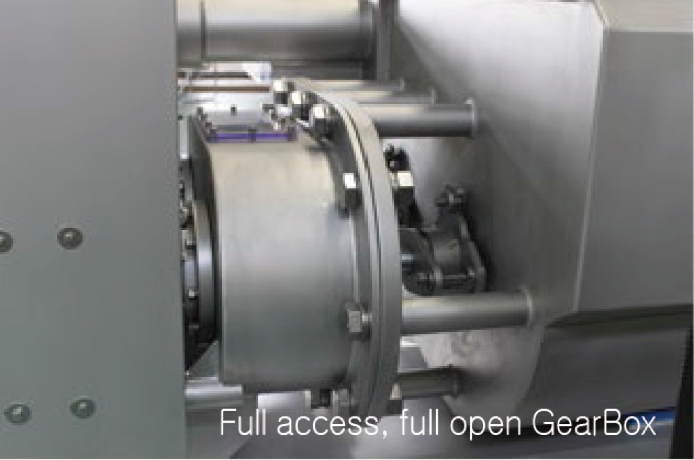 강화된 내구성을 자랑하는 높은 토오크의 구동 드라이브는 사용자의 유지보전 업무에 완벽한 내부접근성을 제공합니다. 모니터링창에 의해 구동부는 실시간 감시가 가능하며, 이 난이도 높은 구역에 대한 유지보전 업무 부하는 현저히 감소됩니다.