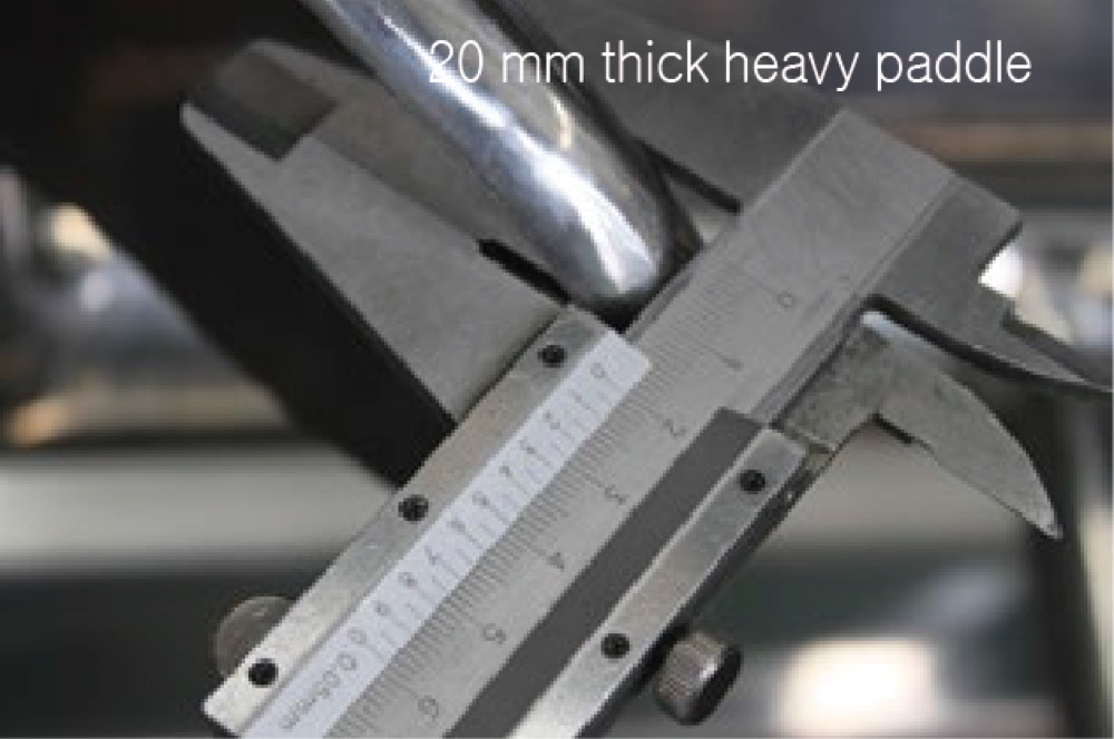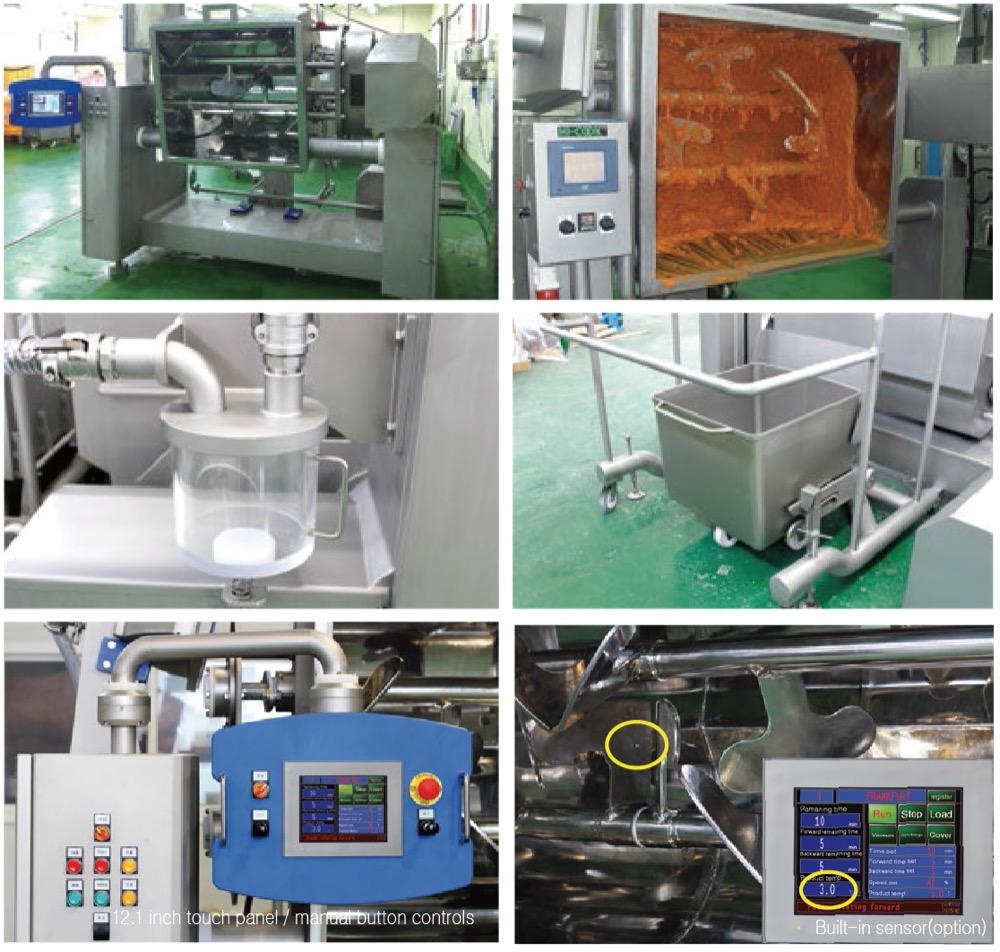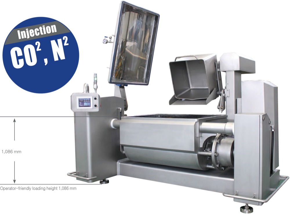구형 믹서 시스템에서는 원료물이 샤프트베어링으로 진입하여 일정 시간 체류하면서 오염된 후, 재차 탱크안으로 역진입하는 문제가 있었고, 이것이 HACCP상 중요한 위험요소였습니다. 특허의 샤프트씰 Wedge 시스템에서는 원료육이 내부에서 외부로만(In to Out) 흐르게 하여 탱크로의 역진입이 기계적으로 불가능하게 되고, 원료육의 오염을 원천적으로 차단했습니다.